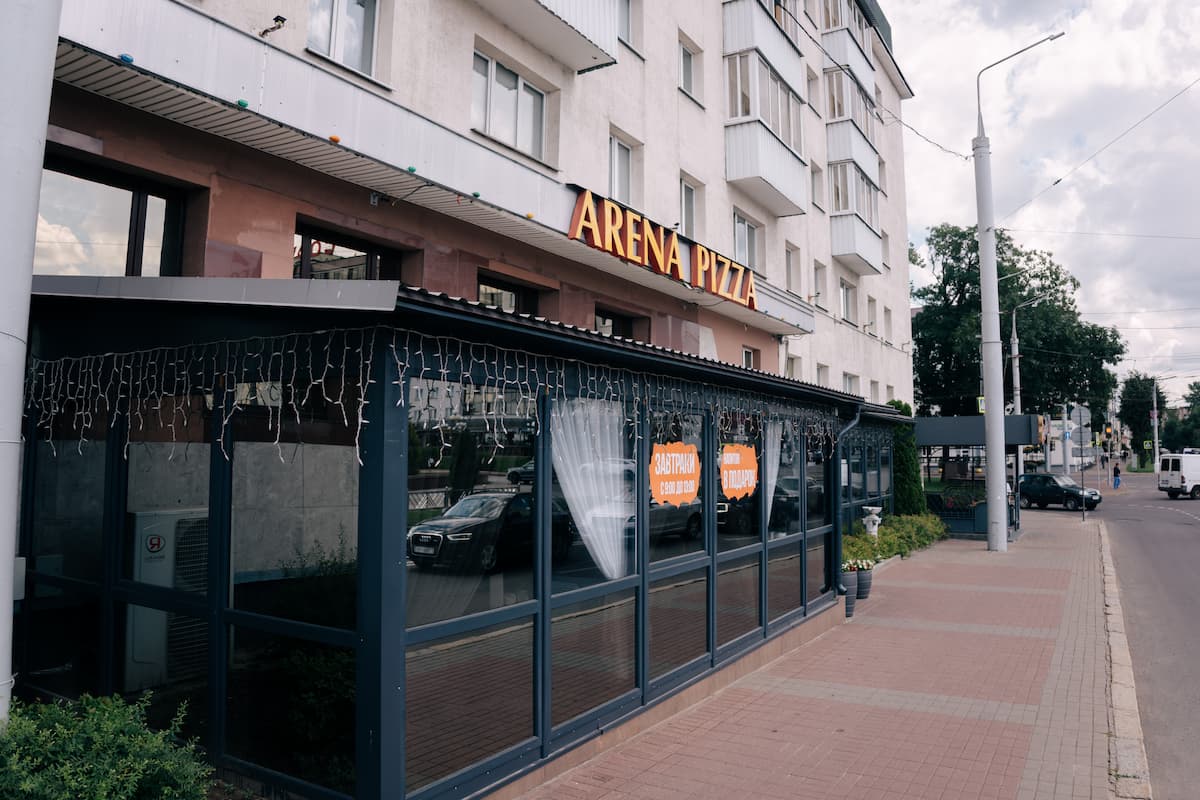 Режим работы в Новогодние праздники: 20.12 - 25.12 с 11:00 до 01.00; 26.12 - 28.12 с 11:00 до 23:00; 29.12 с 11:00 до 01.00; 30.12 с 11:00 до 23.00; 31.12 с 11:00 до 17.00; 01.01 с 11:00 до 23:00. Кафе Арена пицца в Витебске — это уютное заведение с итальянской атмосферой, расположенное в центре города. Удобное расположение и приятная обстановка делают кафе популярным местом отдыха среди жителей и гостей города. Здесь можно насладиться блюдами итальянской и европейской кухни, провести семейный ужин, встретиться с друзьями или просто приятно провести время, любуясь видом на главную площадь города. Для комфорта гостей предусмотрены три зала: основной, банкетный и круглогодичная терраса с панорамными окнами и живыми цветами. Интерьер кафе выполнен в тёплых, уютных тонах, мягкий свет и спокойная музыка создают атмосферу уюта и спокойствия. Для маленьких гостей предусмотрена детская зона с игрушками и раскрасками. Наше кафе подходит не только для повседневного отдыха, но и для проведения праздничных мероприятий. Просторный банкетный зал рассчитан на 45 гостей и идеально подходит для проведения свадеб, корпоративов и семейных торжеств. В зале можно свободно расставить столы, оборудовано место для танцев и выступлений, есть звуковая аппаратура и микрофоны. Для именинников мы предлагаем скидку 20% в День рождения на категории: салаты, горячие блюда, гарниры и новое банкетное меню. В нашем кафе можно оформить заказной торт от кондитерской Арена Десерто с бесплатной доставкой. Оформление разрабатывается с учётом пожеланий гостя.